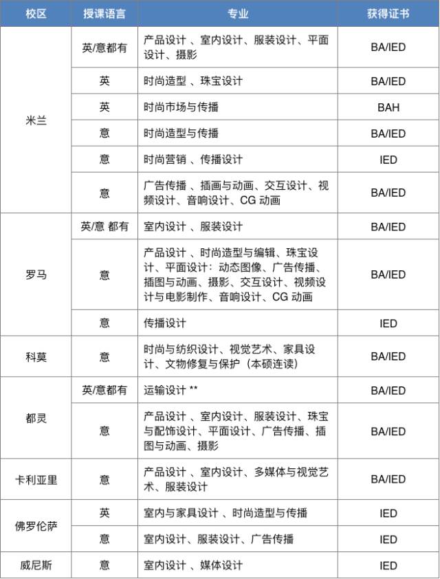 意大利留学的学生除了关注学院地理位置、资质、师资等方面,更关注可以亲自体验意大利艺术创作氛围的机会。在校时期是否可以参与更多的Workshop实践经历,已经成为学生选择院校重要的考量标准之一。 相比之下,意大利私立院校已经成为更多学生的首选。在师资方面,私立院校老师多为行业内的时尚先锋,以践行者的视角传递行业最新动向;在教学模式方面,私立院校偏重实践,让学生尽早领悟时尚前沿的变化趋势;在专业设置上,私立院校更专注高端新兴领域专业人才培养。 意大利高校直通车特别策划私立院校模块,为学生提供更多意大利留学的专业信息分享平台。本期意大利高校直通车私立专列特别推荐——欧洲设计学院。 ![]() 前瞻性的教育理念&设计师的摇篮 欧洲设计学院(Istituto Europeo di Design)简称IED,成立于1966年。作为欧洲最大的私立设计学院,欧洲设计学院有悠久的历史及很高的国际声誉。学院总部设在意大利米兰,在罗马、都灵、威尼斯、佛罗伦萨、卡利亚里、科莫、马德里、巴塞罗那、圣保罗和里约热内卢分别设有分校,均致力于设计、时尚、视觉艺术、管理和传播领域的教育及研究。 其中,米兰、罗马、都灵、威尼斯、佛罗伦萨、科莫和卡利亚里校区的本科学历及科莫校区的研究生学历,同时受到意大利教育部和中国教育部的认可。欧洲设计学院教学目标是对学生文化、创新、管理和设计能力的培养和提高,而知识和实践技能的结合是实现此目标所不可或缺的基础。 ![]() ● 专注设计和时尚的国际教育网络 欧洲设计学院的所有分校都采用IED集团的理念和教学方法。各分校区都符合IED的全球统一标准,却又有自己的特点,做到所设课程与当地经济和社会现状接轨。 无论是研究项目还是研讨会,欧洲设计学院与多家国际知名公司有合作关系,因此学生能够迅速运用所学知识在实践中获得宝贵经验,进而融入公司环境。 ![]() ▶ 合作项目促进专业拓展 作为一个不断成长的国际学校网络,欧洲设计学院与全球众多专业院校保持着密切合作。同时,学院长期以来一直为国际上知名公司、大学和国外政府机构提供咨询,并且经常性地举办实践研讨、实习和练习,所有这些活动都与课堂的教学同步。 学院使学生直接接触专业技能,专注训练学生如何设计。在这里,学生可以零距离接触主要的专业技能及其在生产流程之中的逻辑,以及进行传播与营销的方法。 ![]() ▶ 理论与实践的协同 学校教师都是各自领域的专业人士,不但可以清晰的讲解理论,也可以指导实践课题研究,是教学的品质保障。教授鼓励师生互动,这可以使学生从讲师的知识与技能中充分汲取力量。 学校与知名品牌的公司开展了密切合作。时尚界、设计界与传播界的知名人士带着各自的专业经验与创新方法走进课堂,不遗余力地教授学生如何在第一时间了解各自领域的发展趋势,并掌握技术要领,从而丰富学生的眼界。 ![]() ▶ 成熟完善的实验室 从灯光实验室、时尚配饰和鞋类设计实验室,到模型制作实验室,在整个学习过程中,欧洲设计学院为学生提供了最现代的实验室,同时也配有大型时装表演用的会场。在技术上,硬件和软件的不断更新为学生提供了强大的支持。 ![]() ● 欧洲设计学院2017春季本科招生计划